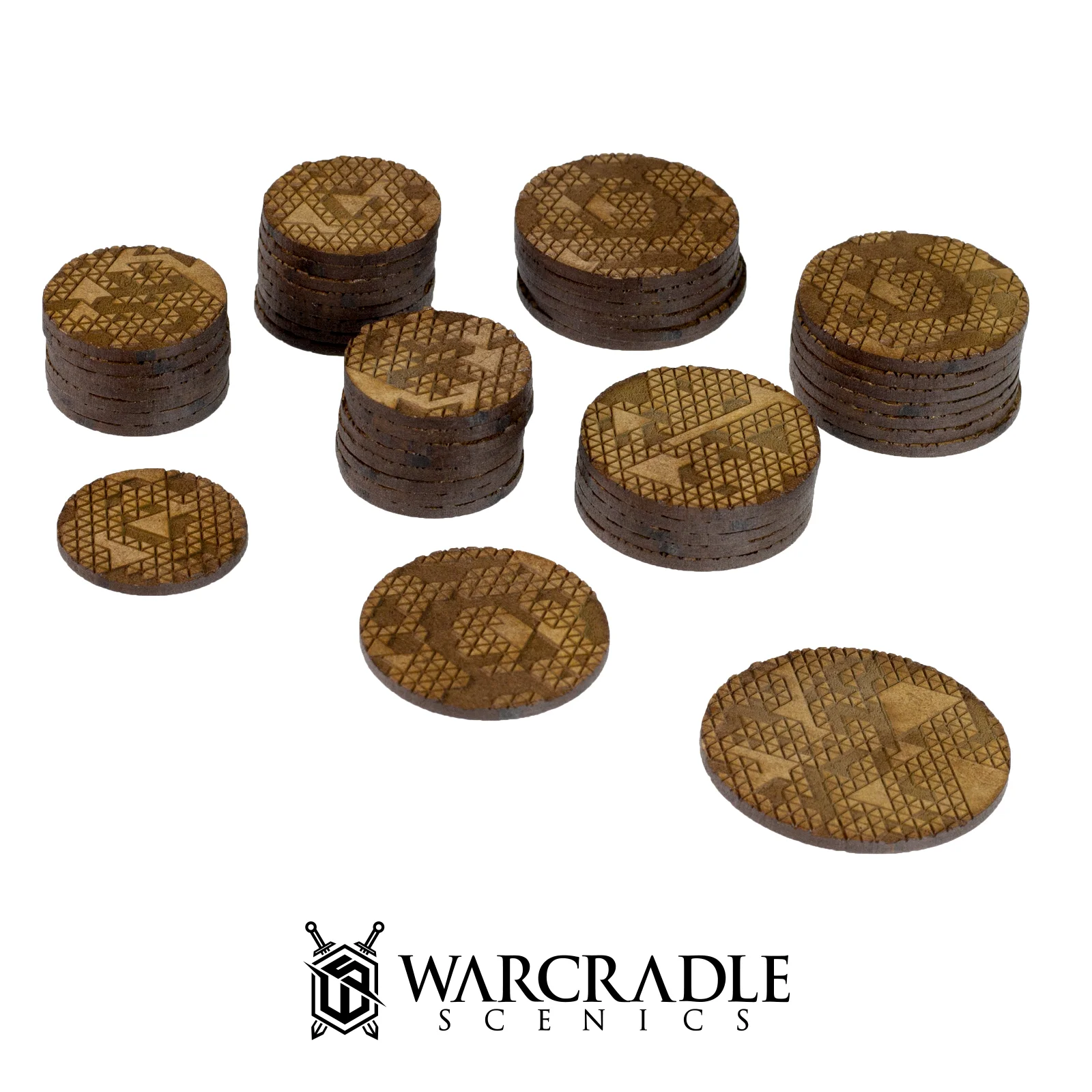 This intricately detailed set of scenic MDF bases are ideal for all 25mm - 35mm Sci-Fi miniatures. These are perfect for use with Blackstone Fortress as the set contains the correctly sized bases for every miniature in the core set.