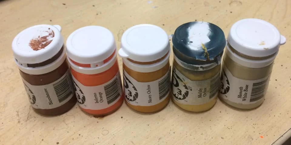 A mix of 1/1/1 Bloodstone, Inferno Orange and Meaty Ochre was applied to the major volumes.
