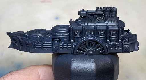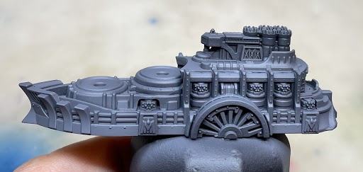 Step 19 - To finish, I used the previous mix to apply some weathering across the model and picked out edges of important detail like the bridge, the prow and the weapons.