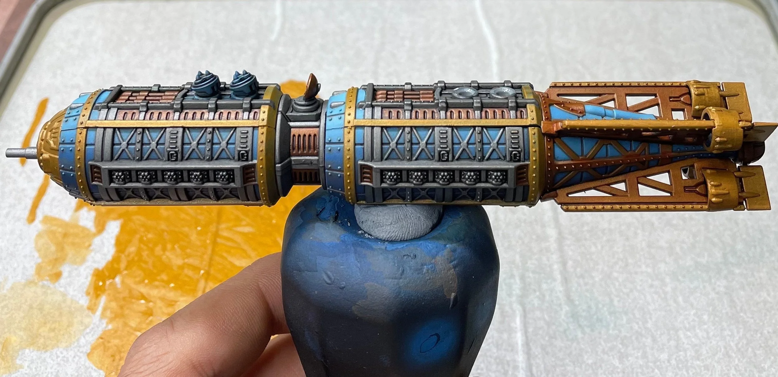 The great thing about the new airships is that they can be assembled to fight for either the Union or the privateers of the Honorable Eclipse Company (HEC). Daz is mainly going to use this Excelsior for his HEC Battlefleet, so he’ll be using rich blues and elegant golds to give these mercenaries the paint job they deserve!