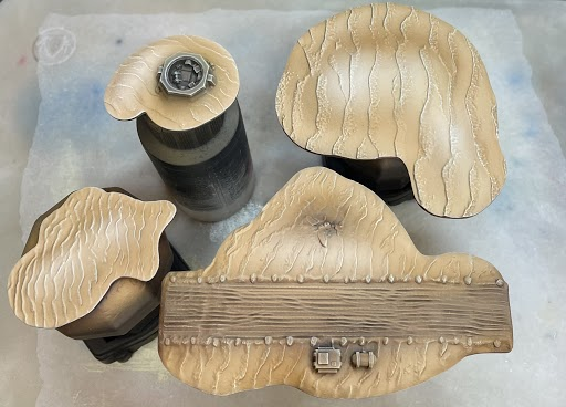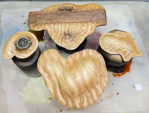 Step 8 - I applied a glaze of Sepia Ink (Vallejo) followed by a very thin glaze of red and brown ink (Vallejo).