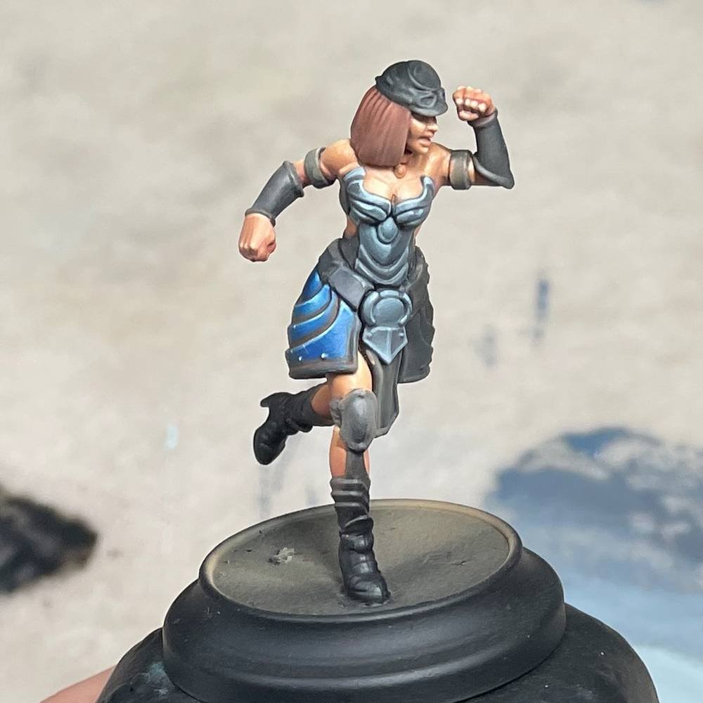 Step 1: I started off adding a base coat to the armour with P3 Cygnar Base Blue. I applied this in two thin coats, watered down around 50/50, only applying the second coat to the areas that would catch the light, leaving the first to provide a rudimentary shade.